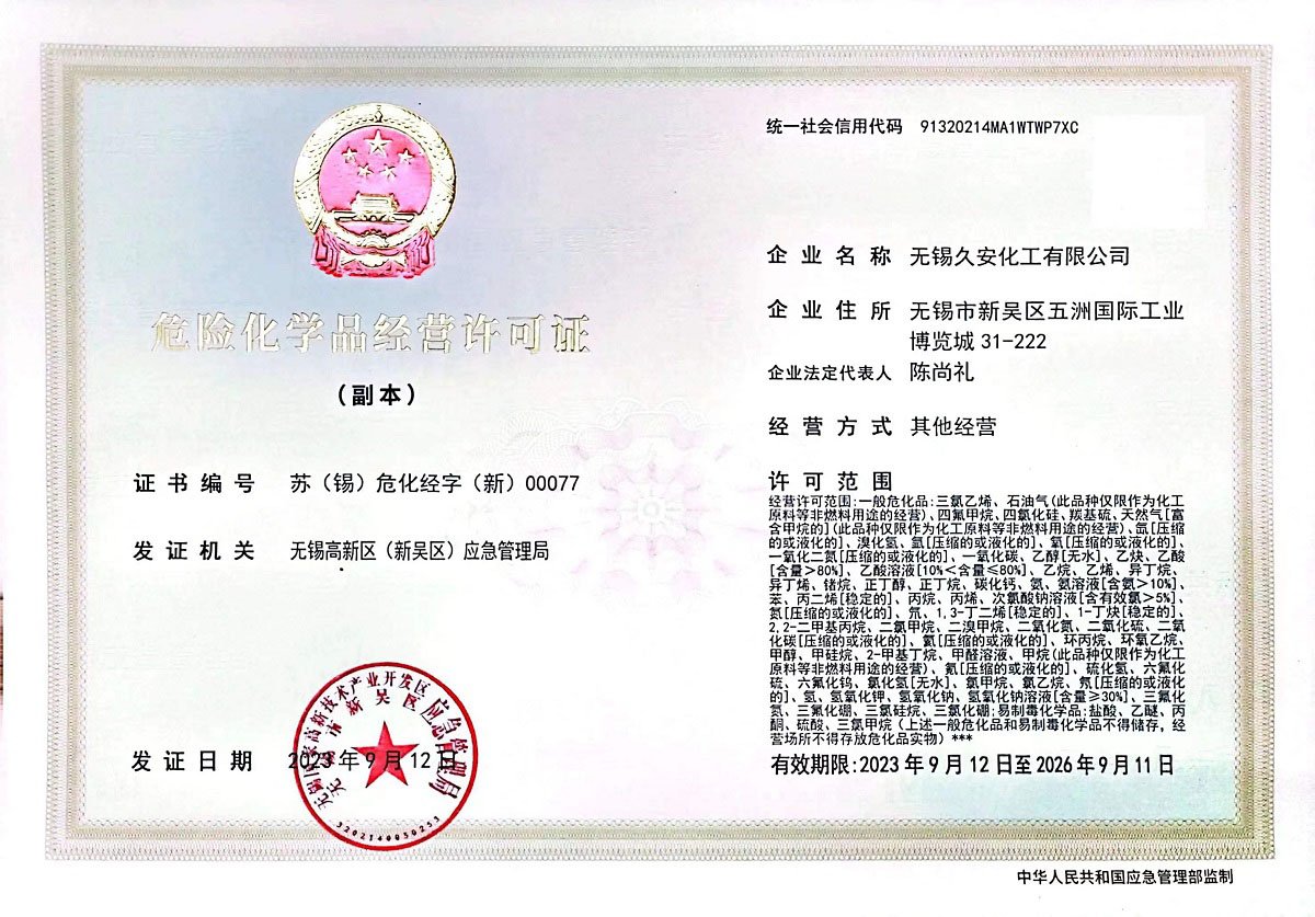 無(wú)錫久安化工有限公司成立于2018年,位于無(wú)錫錫山區(qū)是一家專業(yè)的工業(yè)氣體供應(yīng)商,無(wú)錫久安化工生產(chǎn)與銷售各種氣體、工業(yè)氣體、高純度氣體、特種氣體體、電子氣體、稀有氣體等多種產(chǎn)品:氧氣、氮?dú)?、氬氣、二氧化碳、混合氣等工業(yè)氣體;液氧、液氮、液氬、液二氧化碳、等液態(tài)氣體;乙炔、丙烷、氫氣、高純氣、特氣等特殊氣體等。